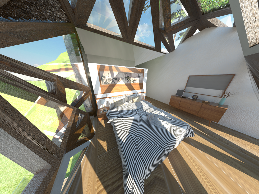 The glass box in the middle was created as a result of the tree that sat in the middle of the plot, this once again follows the motto of being one with nature and creates a beautiful lightray in the middle of the house. The house sits on the plot with an integrated gym , gardens and a wooden deck connecting the plot with the sea and allows for private boats to dock.